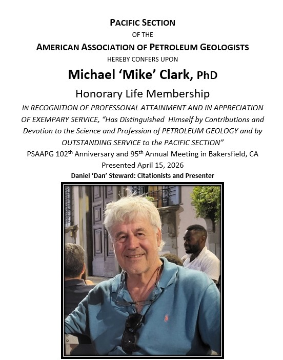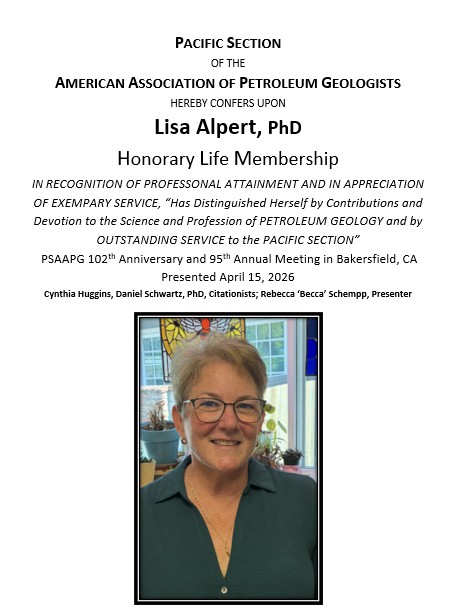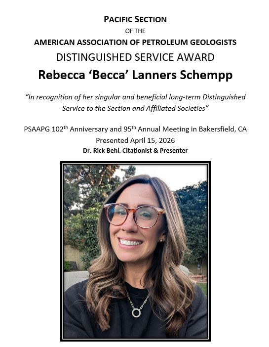 We want to thank and congratulate our 2025-2026 Honors & Awards Recipients! Each recipient was recognized at our Honors & Awards Luncheon on April 15, 2026 at the PSAAPG/SPE Western Regional Joint Meeting. Their ongoing support and involvement in the society is crucial to its success! Thank you!